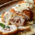 Air Fryer Chicken Cordon Bleu with Swiss Cheese Sauce | CookWithFeast